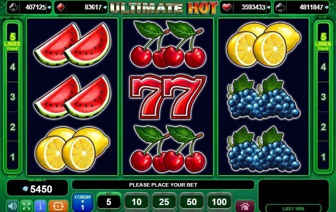 Kompanija EGT poznata je po proizvodnji serije slotova u koje spadaju 20 Super Hot, 40 Super Hot, 5 Dazzling Hot, Flaming Hot I Supreme Hot, pa ne čudi što su izbacili još jedan slot u sličnom stilu, Ultimate Hot. Iako je ovo jedan od jednostavnijih slotova EGT-a, dovoljno je zanimljiv za igrače. Ovaj slot kombinuje ono što se dopada većini igrača – retro simbole kao što je srećna sedmica, zvezda, zvono kao i simboli koji su predstavljeni voćem poput dinja, grožđa, limuna, narandža šljiva i trešnje. Ultimate Hot ne sadrži wild symbol.